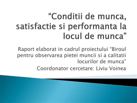 - Condiții de muncă: